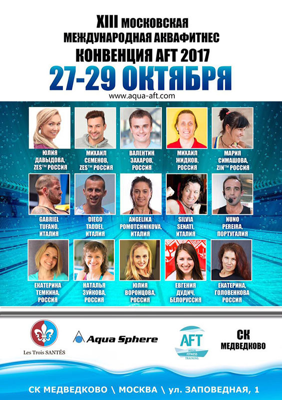 29 октября 2017 года в Москве состоялась 13 Международная Аква Конвенция, где я являюсь презентером. Мы даем мастер классы для тренеров по аква аэробике России и стран СНГ. Презентеры из Италии и Португалии представили свои мастер классы, такие звезды аква фитнеса как Сильвия Сенати, Габриэль Туфано, Анжелика Помощникова, Диего Тадеи, Нуно Перейра. Я работаю вместе с такими звездами на одном бортике. Поэтому уровень моих тренировок качественно отличается от всех остальных тренеров по аква аэробике. Я никогда не сижу на одном месте и всегда развиваюсь и учусь у своих коллег.